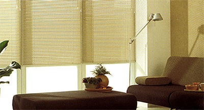 Für den Sonnen- und Sichtschutz halten wir ein umfangreiches Sortiment für Sie bereit: Innenjalousien mit Aluminium-Lamellen von Luxaflex oder Turnils, in den Lamellen-Größen 15, 25, 35 und 50mm. Fast 100 verschiedene Farben stehen Ihnen zur Auswahl. Nach Wunsch auch mit Spanndrahtführung.