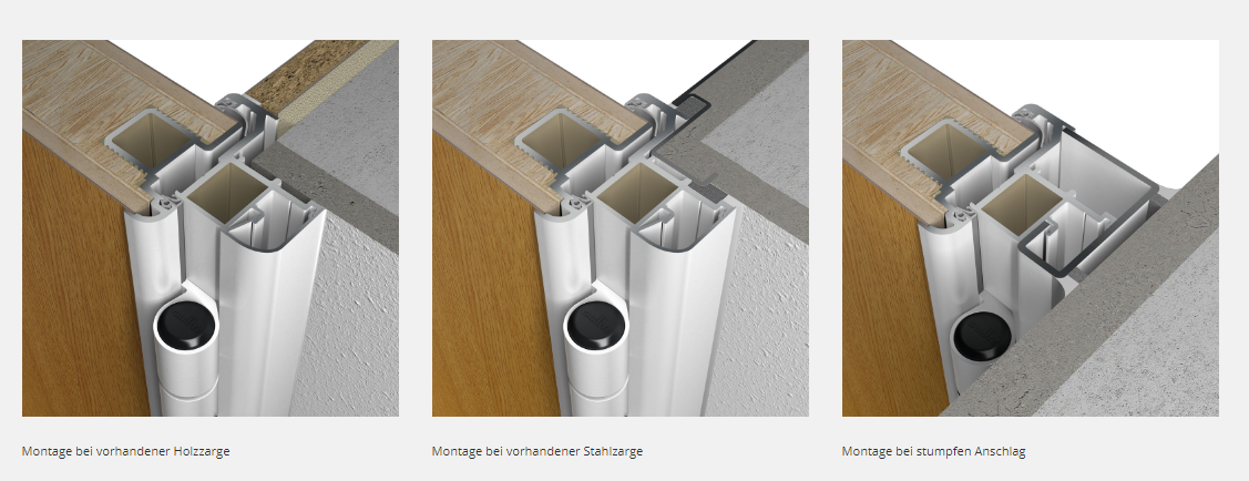 Das intelligente Nachrüstsystem kommt auch bei bauseitiger Holzzarge und bei stumpfem Anschlag in Form einer Blockzarge zum Einsatz.